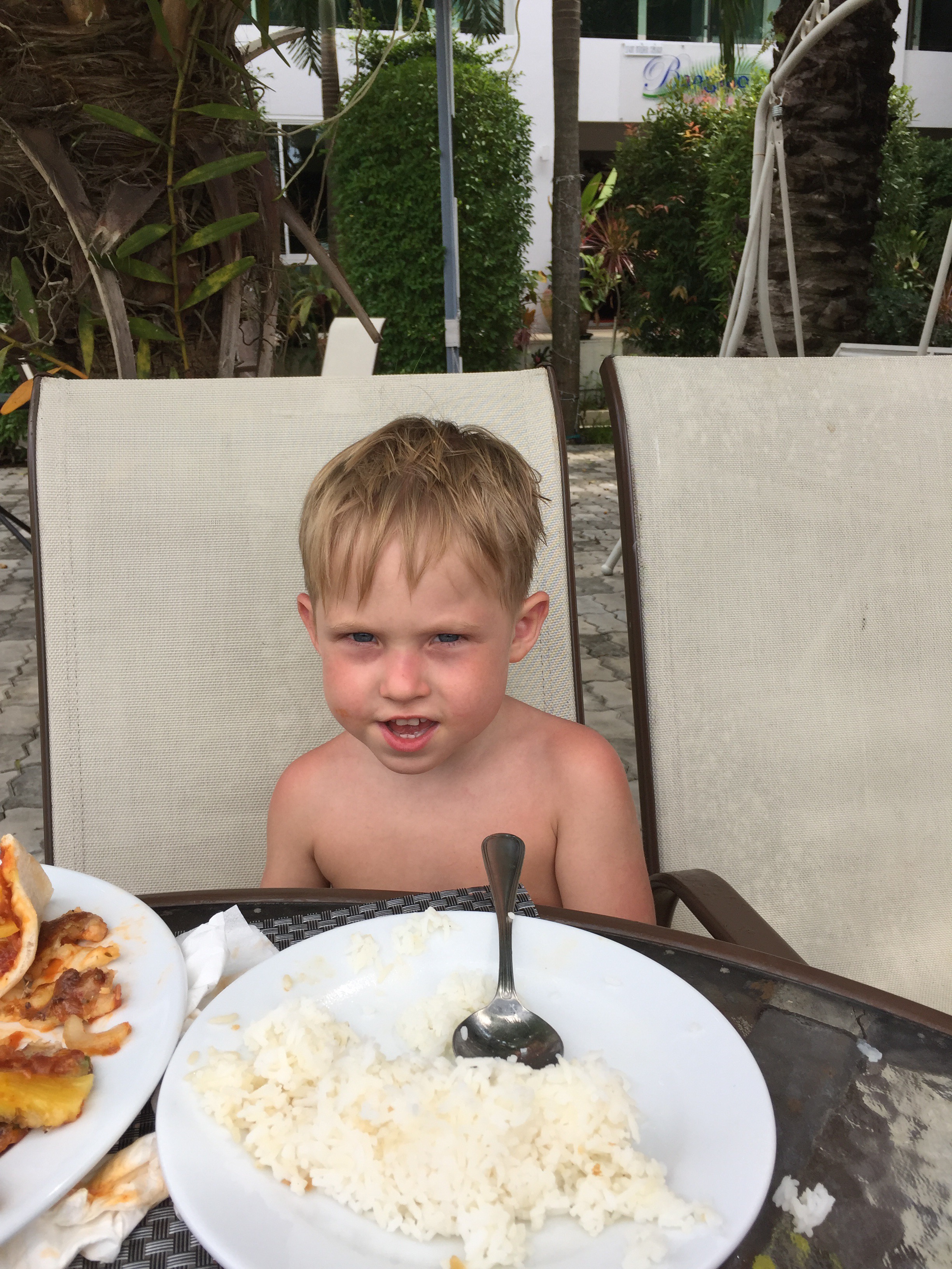 Det man bör tänka på när man skakar huvudet är att det inte finns något hårt i närheten som man kan slå sig mot, till exempel en badstege. Detta lär man sig också vid tre och ett halvt år. Felix såg lyckligtvis inte blodet som forsade ut ur hans näsa innan Kenny fick det att försvinna i poolvattnet. Nu väntar jag bara på att han ska få brottarnäsa och blåtiror på båda ögonen efter smällen. Har vi tur så slipper han.