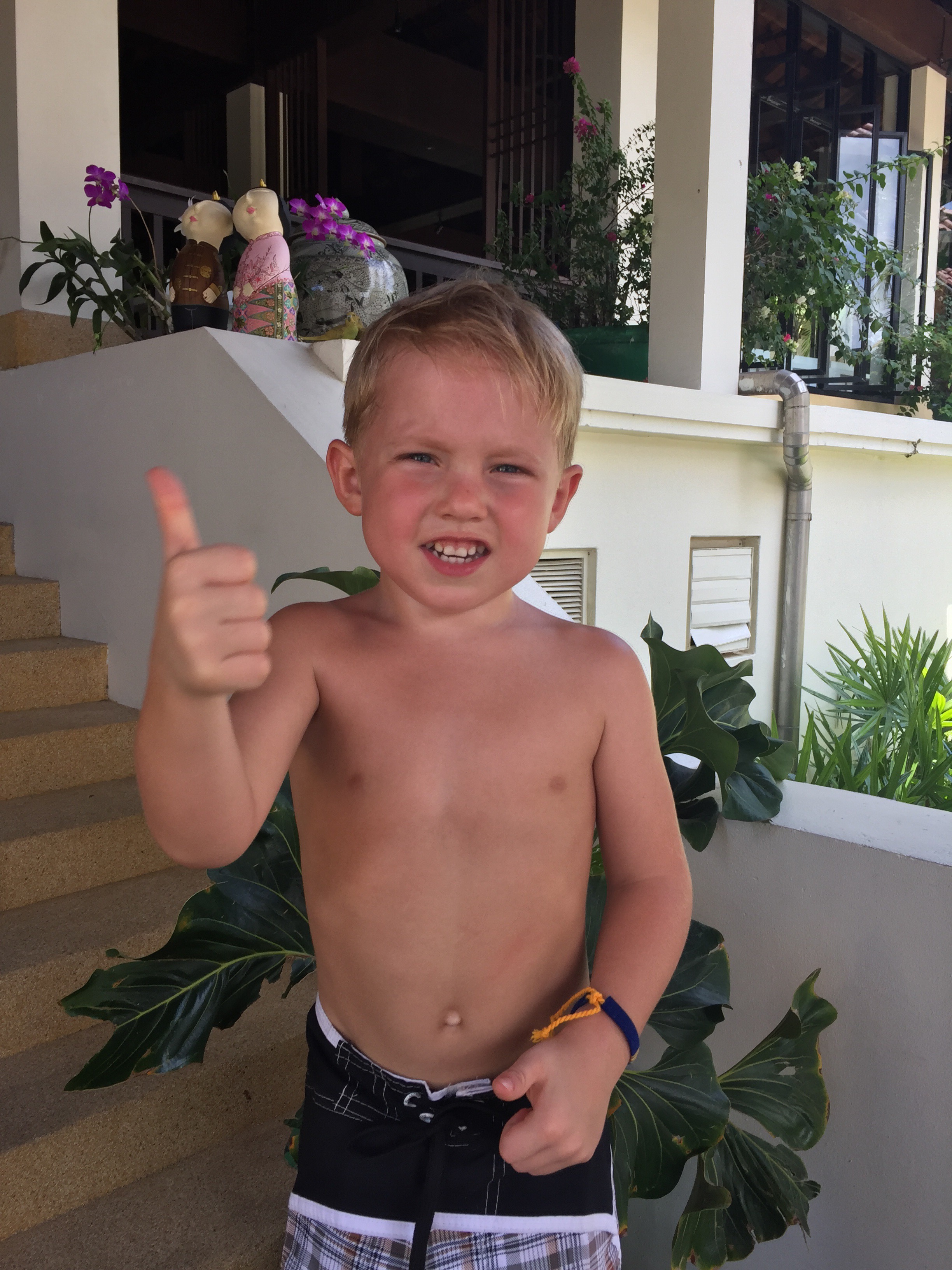 Att resa med barn i Thailand är lite udda. Thailändarna är överförtjusta i barn och kommer och gullar med barnen hela tiden, eller ja, Tuva får betydligt mer uppmärksamhet för att hon är bebis, ungefär som Felix fick när vi var här med honom när han var bebis.