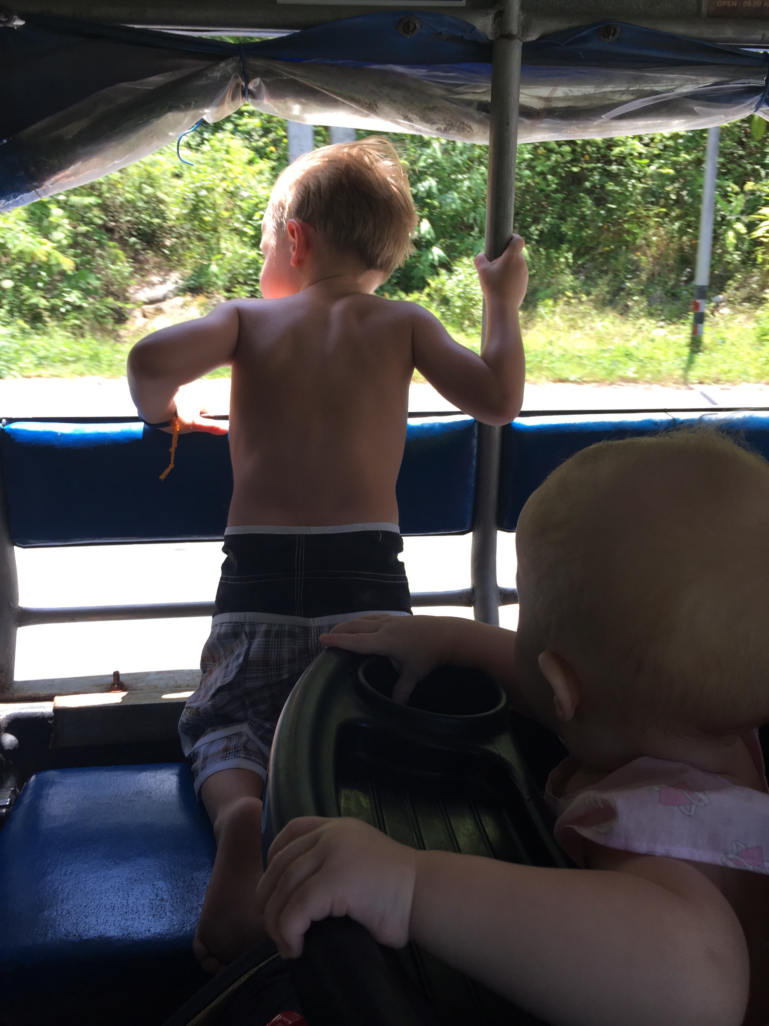 När Felix var bebis så ville alla Thailändare bära honom hela tiden, som tur var så gillade inte Felix det för han skrek direkt när någon annan än vi bar honom. Tuva blir överlycklig när någon kommer fram till henne eller bara går förbi och tittar på henne, hon är en riktig publikfriare. Här har folk dock inte varit så hysteriska med att bära henne så det har inte varit något orosmoment att barnen är ute på drift.