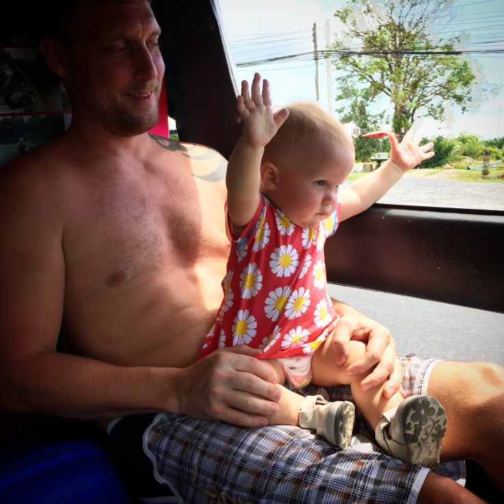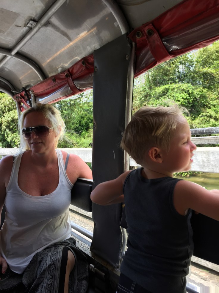 Felix fick välja taxi till flygplatsen. Jag bad Kenny om att fixa en minivan som vi kunde åka med men istället så kom han och Felix tillbaka med en uppgraderad tuktuk. ”Det är roligt för barnen”. Barnen somnade efter tjugo minuter och kvar blev vi, med vinden i håret, men det var skönt.
