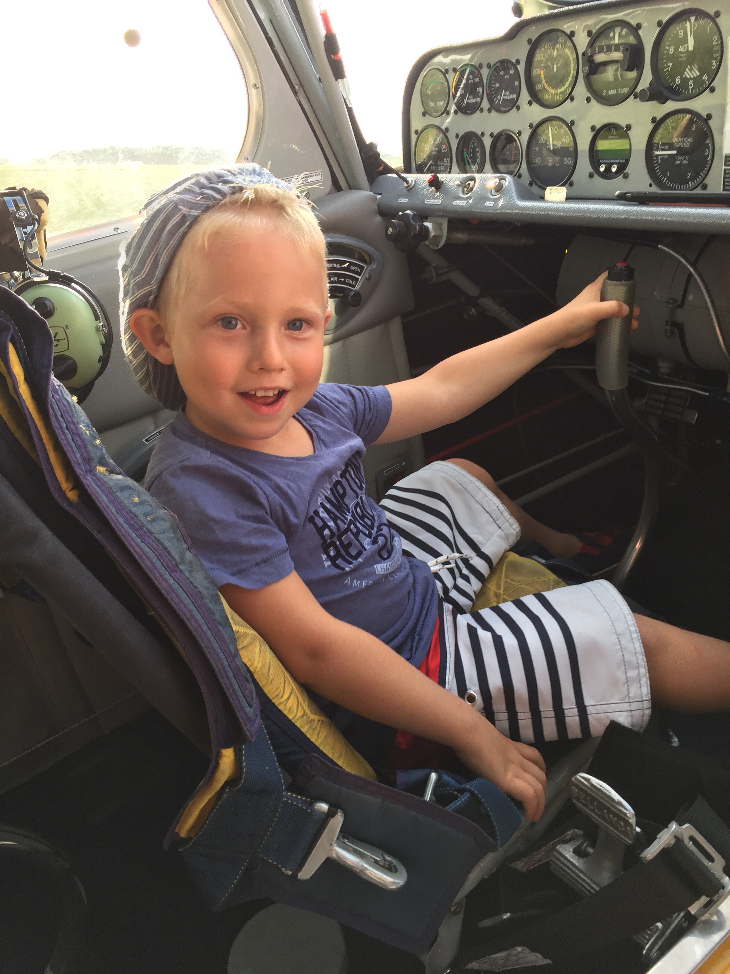 Flygturen gick bra och han skötte sig kanon. Betyget var att det var roligt "men man får inte flyga upp och ner pappa".