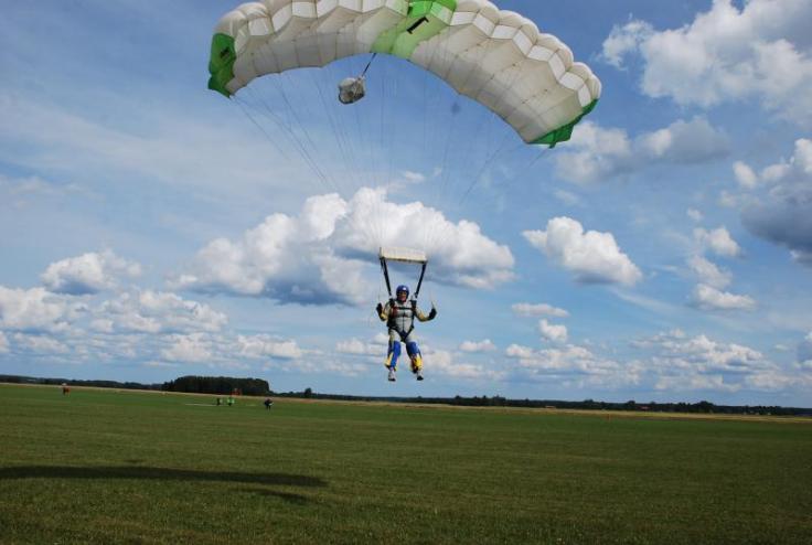 Efter att jag hämtat mig från min förvånande upplevelse så hoppade jag in i planet med mina instruktörer. Jag tycker fortfarande att själva uthoppet är skrämmande och att det dessutom var ett nytt plan som jag flög i där uthoppet var åt sidan gjorde inte saken bättre. Men jag vet att om jag tvekar så kommer jag att börja tänka, och det får inte ske. Alltså så hoppade jag.