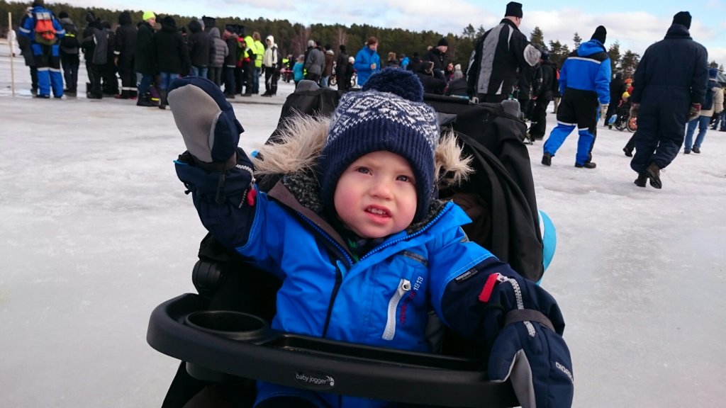 I helgen så var vi på isracing i Gävle och lov från babysimmet, vilket passade perfekt. Isen där uppe var faktiskt fortfarande så tjock så att arrangemanget fungerade. Det var dessutom så fin is så att det var glashalt att ta sig fram på den. Felix försökte flera gånger och det gick sådär.