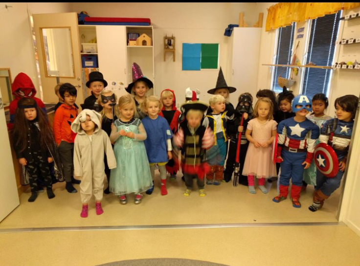 Det blir tack och lov picknick inomhus, så 20 barn och föräldrarna till dessa armbågar sig in bland alla barn som nu ska ta av sig stövlar och regnoveraller, vissa med en Tuva på magen också.