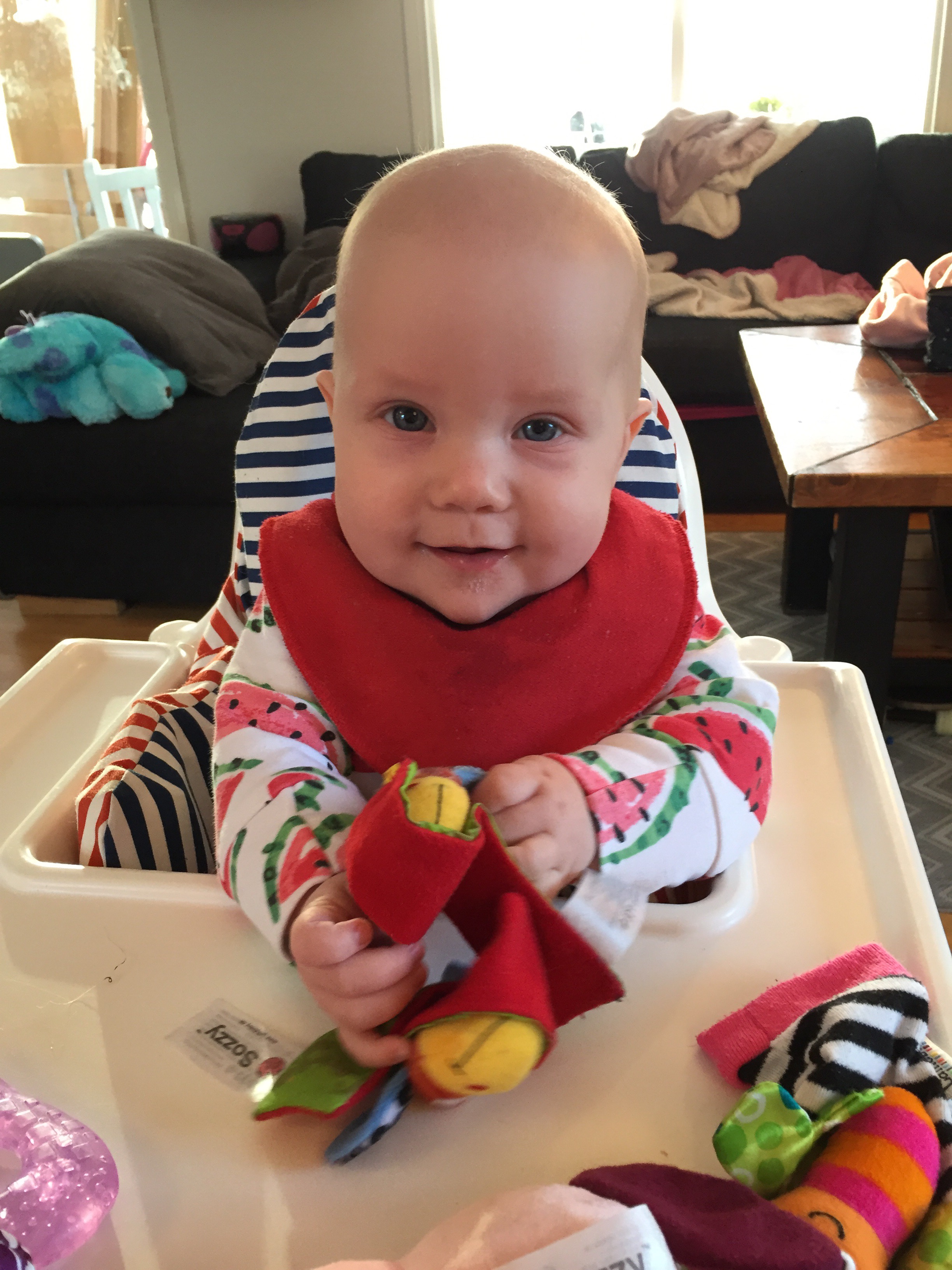 När Kenny och Felix åkt till dagis så matar jag först fågelungen och sen får jag försöka få i mig mina mackor snabbt innan det är dags för första bajsblöjan.