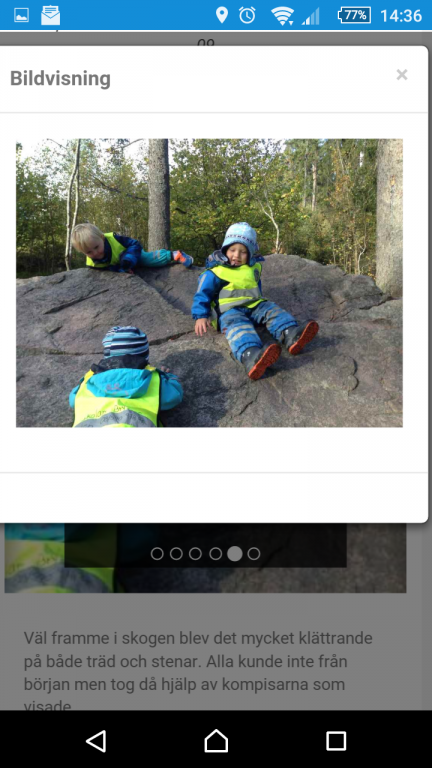 Förskolan har en app. Där lägger de upp bilder på dagisbarnen så att vi kan följa med i vad som händer. Det är inte ett ständigt flöde men ett par gånger i veckan så kommer det upp nya saker, vilket är jätteroligt!