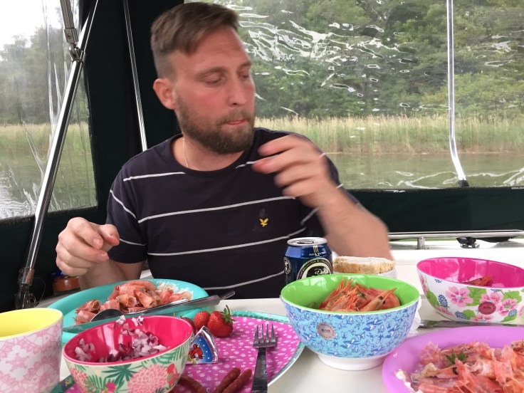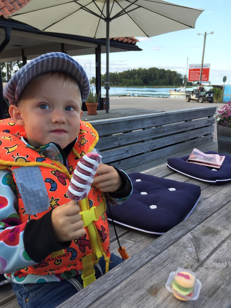 Vädret var skapligt och vi satte kurs på några öar utanför Vaxholm där vi la till för natten och åt upp minst 700kr.