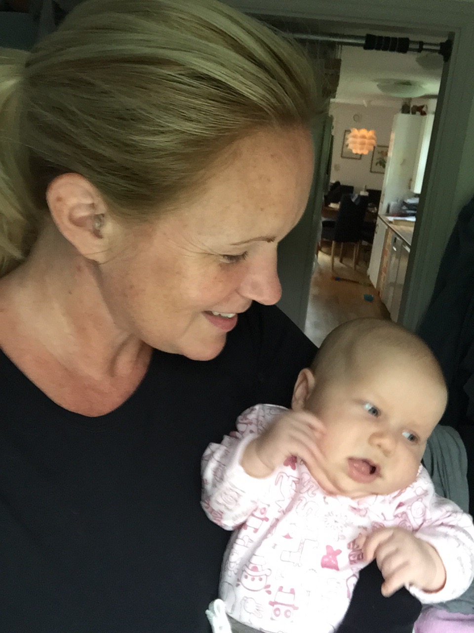 De tog med sig Kenny in i ett angränsande rum för att torka av henne och kontrollera att allt var bra innan de kom och la henne vid mig så jag fick pussa och gosa på henne. Vilken lycka!