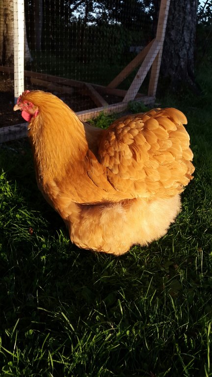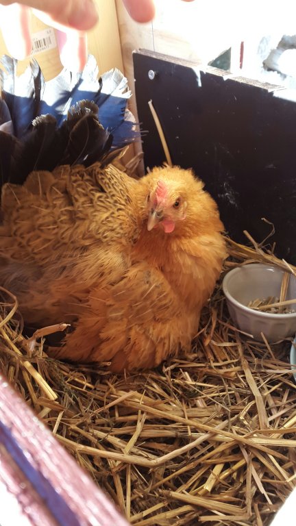 Där i sitt lilla fack låg hon vecka in och vecka ut, med enbart något sällsynt besök vid mat och vattenskålen. När man lyfte på locket för att titta till henne så kacklade hon till förnärmat och sen satte alla hönsen och tuppen igång med sina upprörda skrik. Så lättstötta höns!