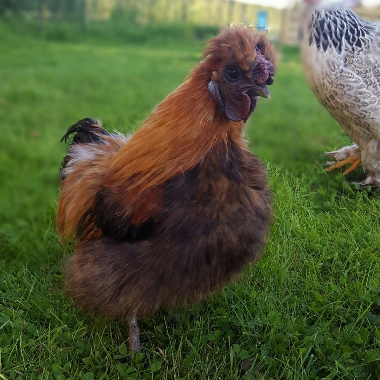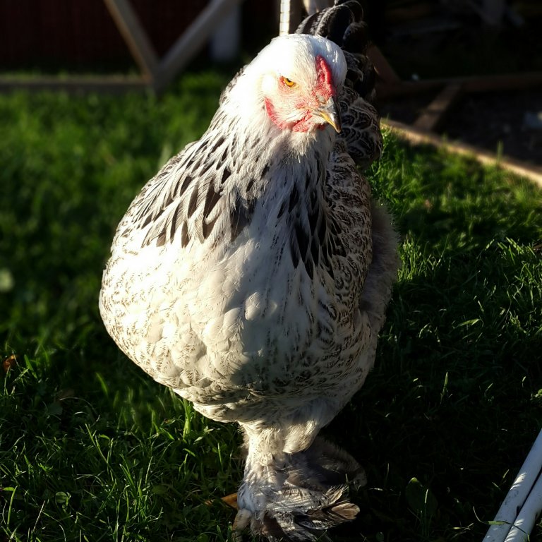 Av en händelse så lyckades jag få tag på fyra Brahmakycklingar som var ett par dagar gamla. Så på dag 35-40 i hönans ruvning så tog vi kycklingarna och helt enkelt stoppade in dem under hönans vingar.
