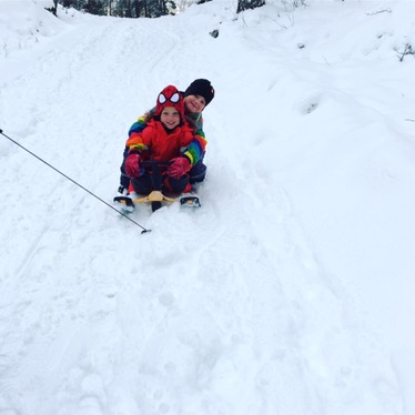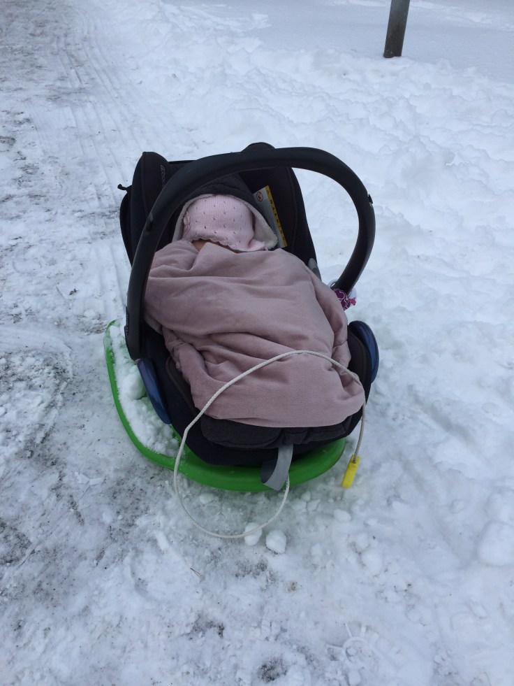 På lördagen så åkte vi pulka med Felix en stund innan vi åkte hem till Andrew och Emelie där det också skulle åkas pulka och bada jacuzzi. Det var en väldigt trevlig kväll, men med tre barn som försöker riva huset (och en bebis som hejar på) så blev det inte någon lugn kväll. Det är väl kanske tio år kvar tills det kan bli det igen.