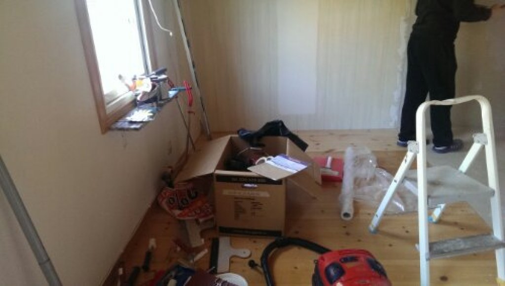 Både i lördags och söndags så försökte vi fixa lite i nygamla huset. Vi koncentrerar oss på sovrummet just nu för att få ett rum klart i taget. Men det är inte ”bara” att slänga på lite färg, det tar tid och det är småsaker som tar tid som ska ordnas innan målningen. Nu har vi dock bara en strykning kvar på väggarna och sen är det bara fönster, dörrkarm och matta på golvet kvar.