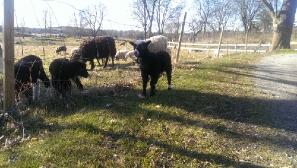 Ett litet lamm hade rymt och stod utanför hagen och jag tänkte förstås att vi måste fånga den och lyfta över stängslet men innan jag hann längre i tanken så stack han in huvudet i stängslet och hoppade igenom en ”ögla”.