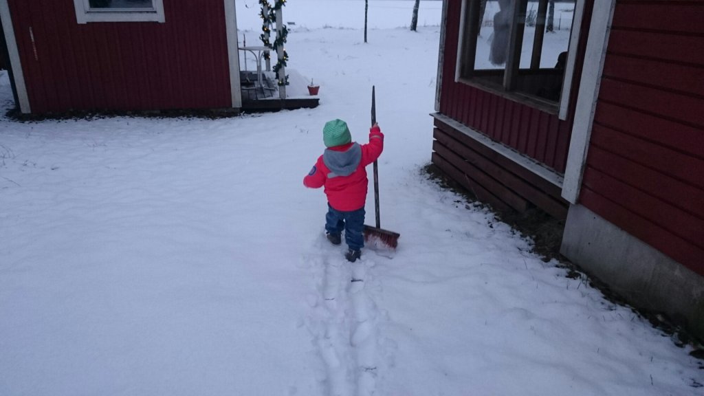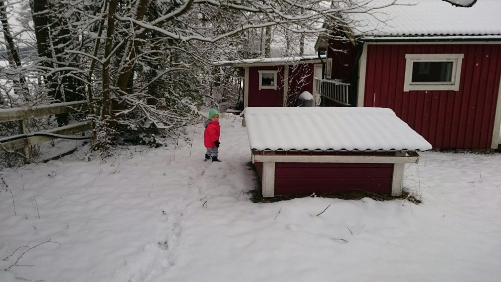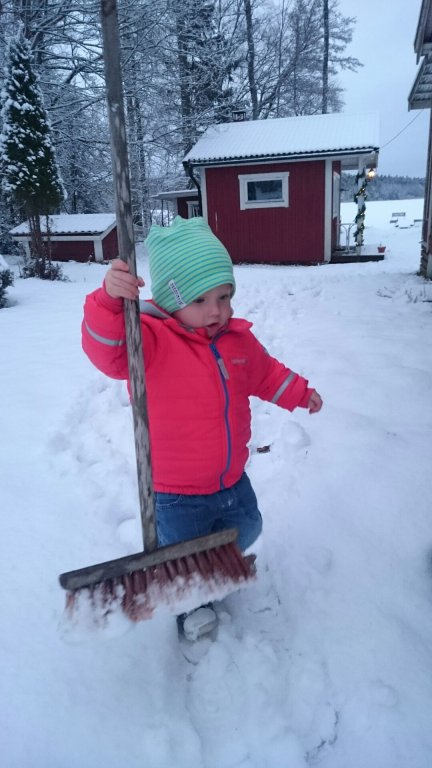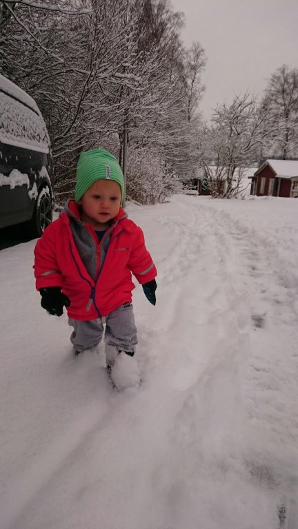 Snön kom ju tillbaka för en stund och det gör i alla fall mig glad. Felix verkar också tycka att det är lite roligt, ibland. Men när han får snö på fingrarna så är det inte kul!