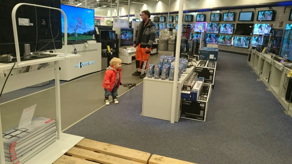 Bilderna ovanför är från Elgiganten, när vi är där och tecknar ett Canal Digitalpaket. Sedan vi flyttade hit i juni 2014 så har vi inte haft någon tv inkopplad. När jag väl bestämde mig för att koppla tv´n, som stått som dammsamlare i sovrummet i ett par månader, till Apple-tv så upptäckte jag att den gått sönder.