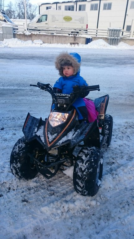 Kenny byter däck på bilen, redan i oktober! Det märks att han är rädd om en liten skrutt nu.