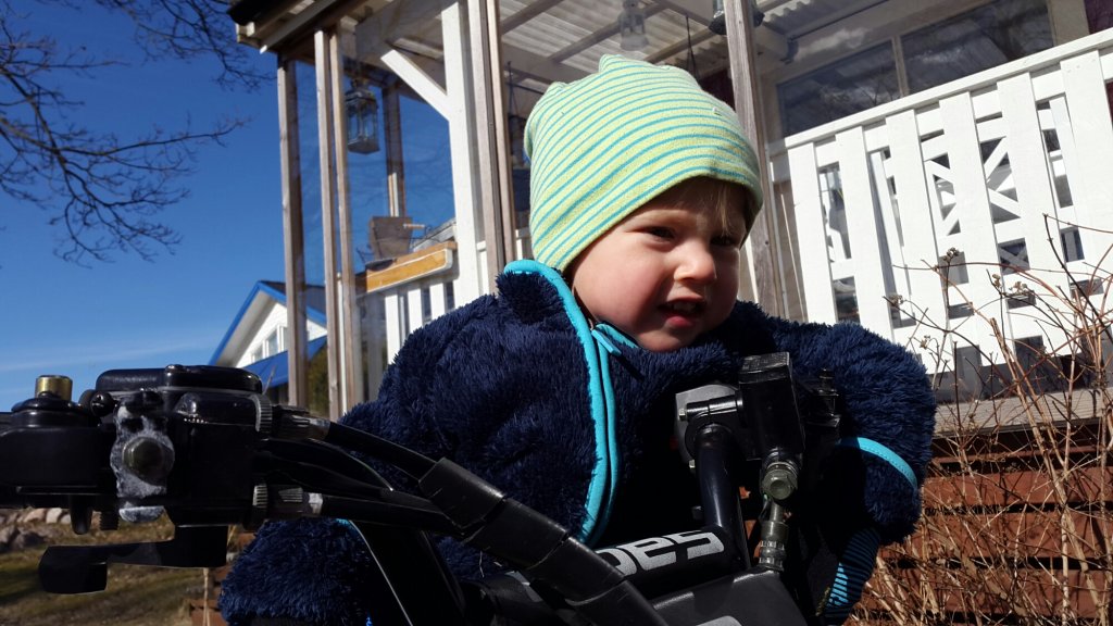 Han har nu på riktigt börjat simma under vattnet och hoppar självmant ut på djupt vatten. Huruvida det är klokt eller inte går inte att diskutera med honom.