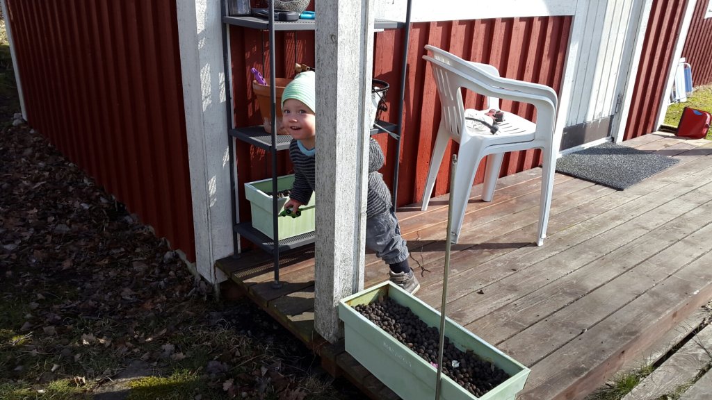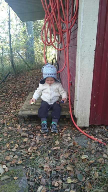 Kenny har installerat båda tvättmaskinerna i bastuhuset nu och i samband med det så röjer vi upp och gör det mysigt därute. Följden blir att vi nu har bastukvällar när Kenny och jag bastar och Felix leker i sin badbalja.
