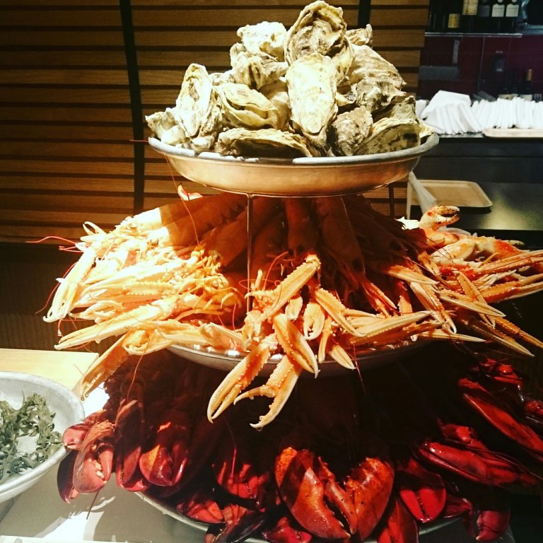 De hade en överdådig skaldjursbuffe som vi gick loss på.