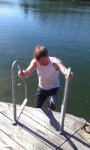 När vi kom till en fin plats i forsen så tog vi en paus och av någon outgrundlig anledning så bestämde sig Kenny, världens största badkruka, för att bada. Vattnet som kommer i forsen är alltså smältvatten från fjället så ni kan tänka er hur varmt det är. Men doppade sig gjorde han i alla fall – imponerande!