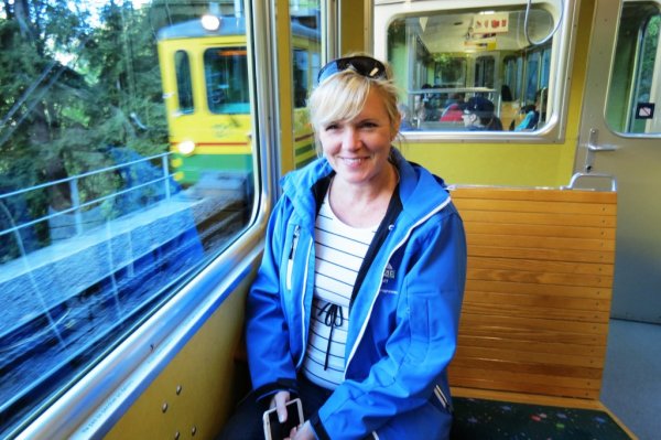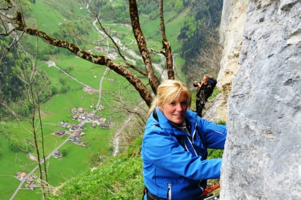 När vi kom till stationen för linbanan så hade vi fortfarande klätterutrustningen på oss och det väckte naturligtvis personalens nyfikenhet som undrade var vi varit. Efter att vi berättat vilken led vi gått så åkte utrustningen av illa kvickt. Via Ferrata var avstängd till juni för att fåglarna häckade och det var förbjudet att gå där.