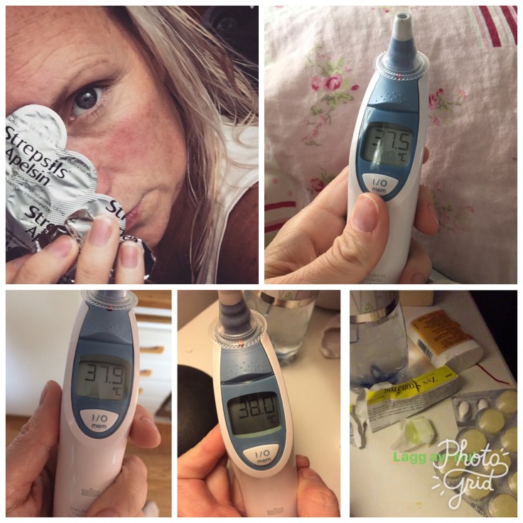 Sedan dess har jag haft feber varje dag som är värst på kvällen, huvudvärk, ont i kroppen och huvudet och en riktigt ruskig hosta. Jag har trott varje dag att ”nu måste jag bli bättre imorgon”, men igår på dag nio så gav jag upp och åkte till Närakuten.